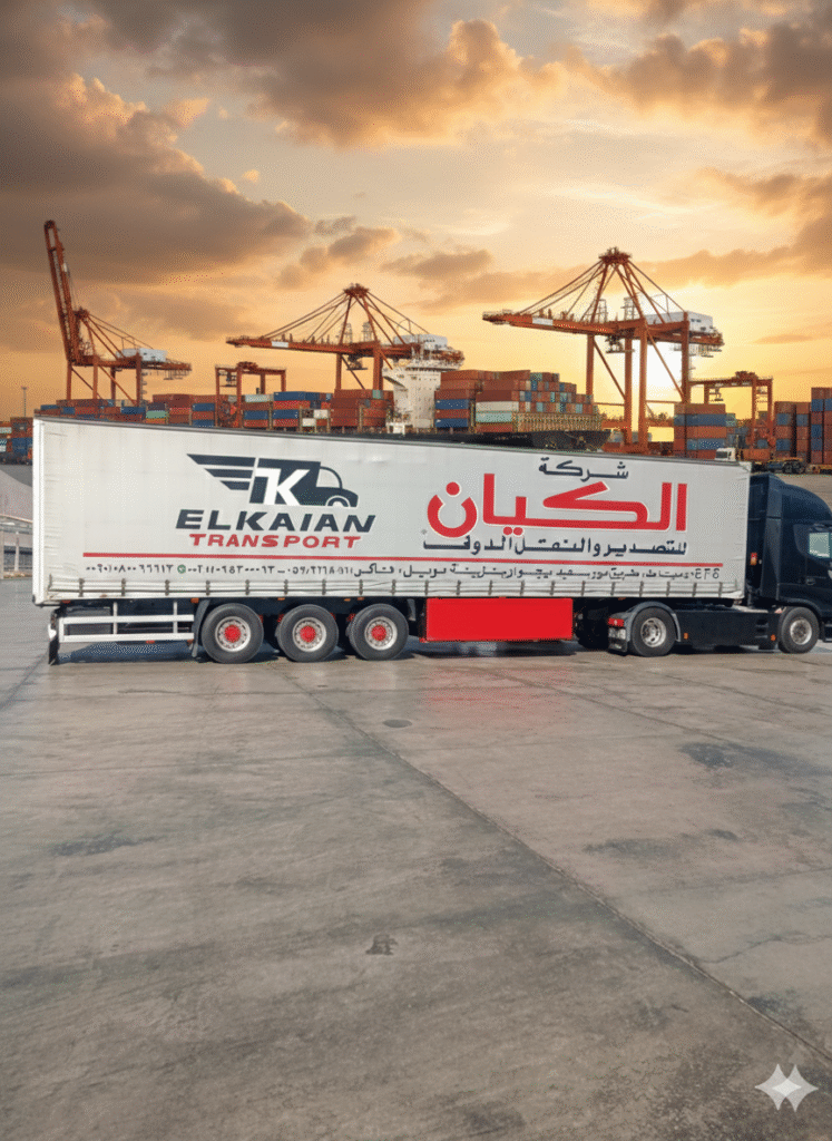 نحن في شركة الكيان نوفّر مجموعة متكاملة من خدمات الشحن والتصدير، تشمل الشحن البري والبحري وخدمات التخزين والمتابعة اللوجستية.نعمل بخبرة تمتد لسنوات طويلة لنقدم حلول نقل موثوقة وآمنة تناسب جميع أنواع البضائع. بفضل الإدارة المحترفة بقيادة الأستاذ ميسرة العفني، نضمن لك سرعة في الإنجاز، والتزامًا دقيقًا بالمواعيد، ومتابعة مستمرة لحركة شحنتك من البداية للنهاية. نهدف دائمًا لتقديم خدمة ترتقي لتوقعات عملائنا… وتليق بثقتهم في اسم الكيان.